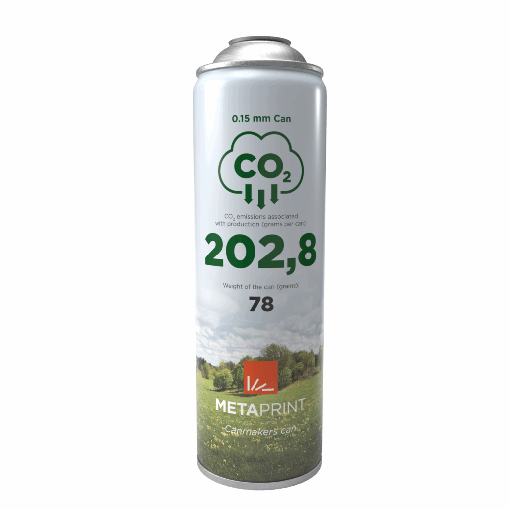 De productie van één 500 ml spuitbus gemaakt van blik met een dikte van 0,15 mm zorgt voor 202,8 g CO₂.